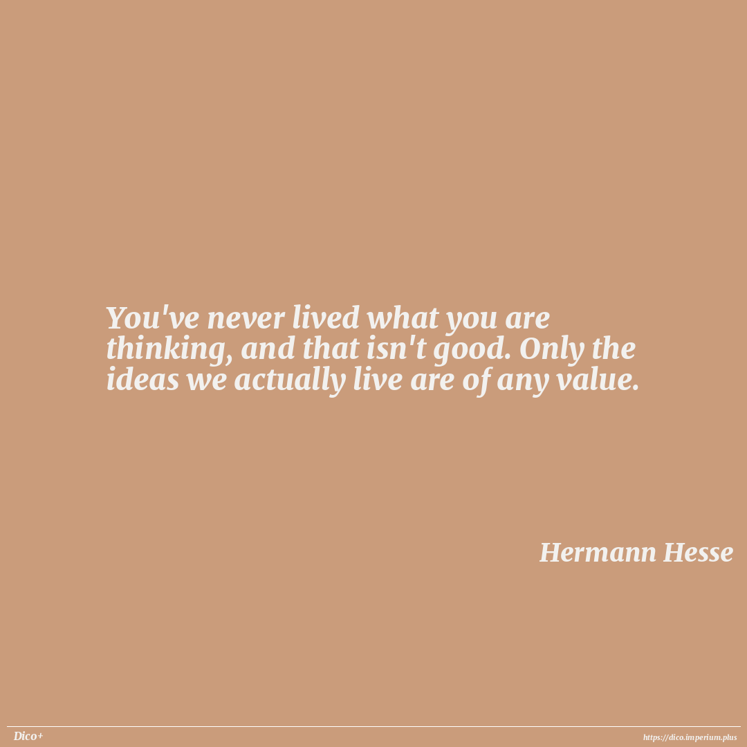 You've never lived what you are thinking, and that isn't good. Only the ideas we actually live are of any value.