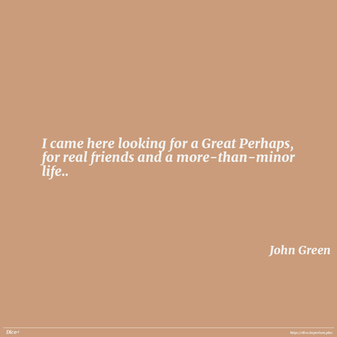 I came here looking for a Great Perhaps, for real friends and a more-than-minor life..