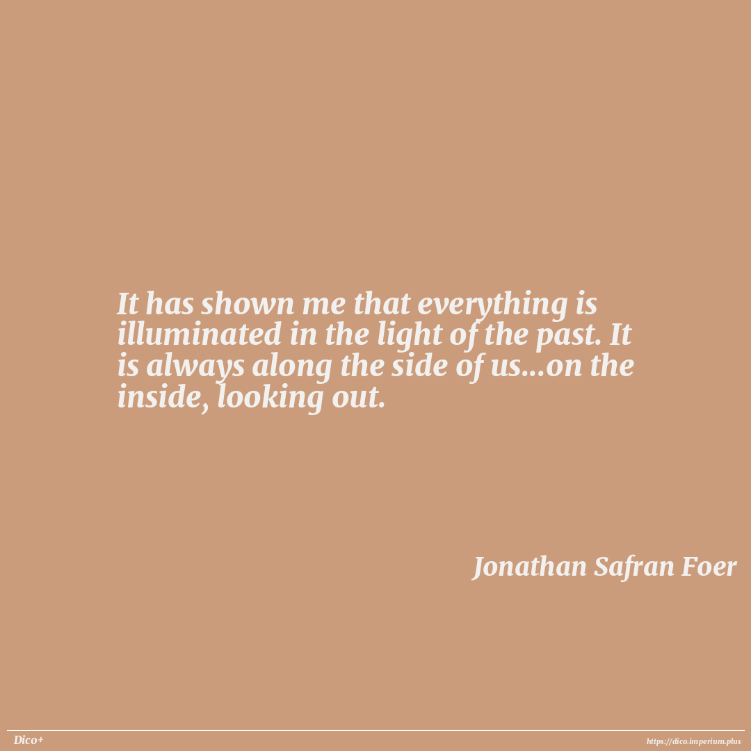 It has shown me that everything is illuminated in the light of the past. It is always along the side of us...on the inside, looking out.