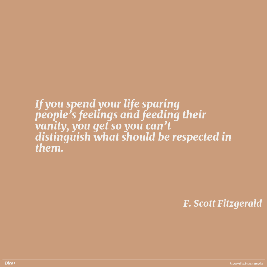 If you spend your life sparing people’s feelings and feeding their vanity, you get so you can’t distinguish what should be respected in them.