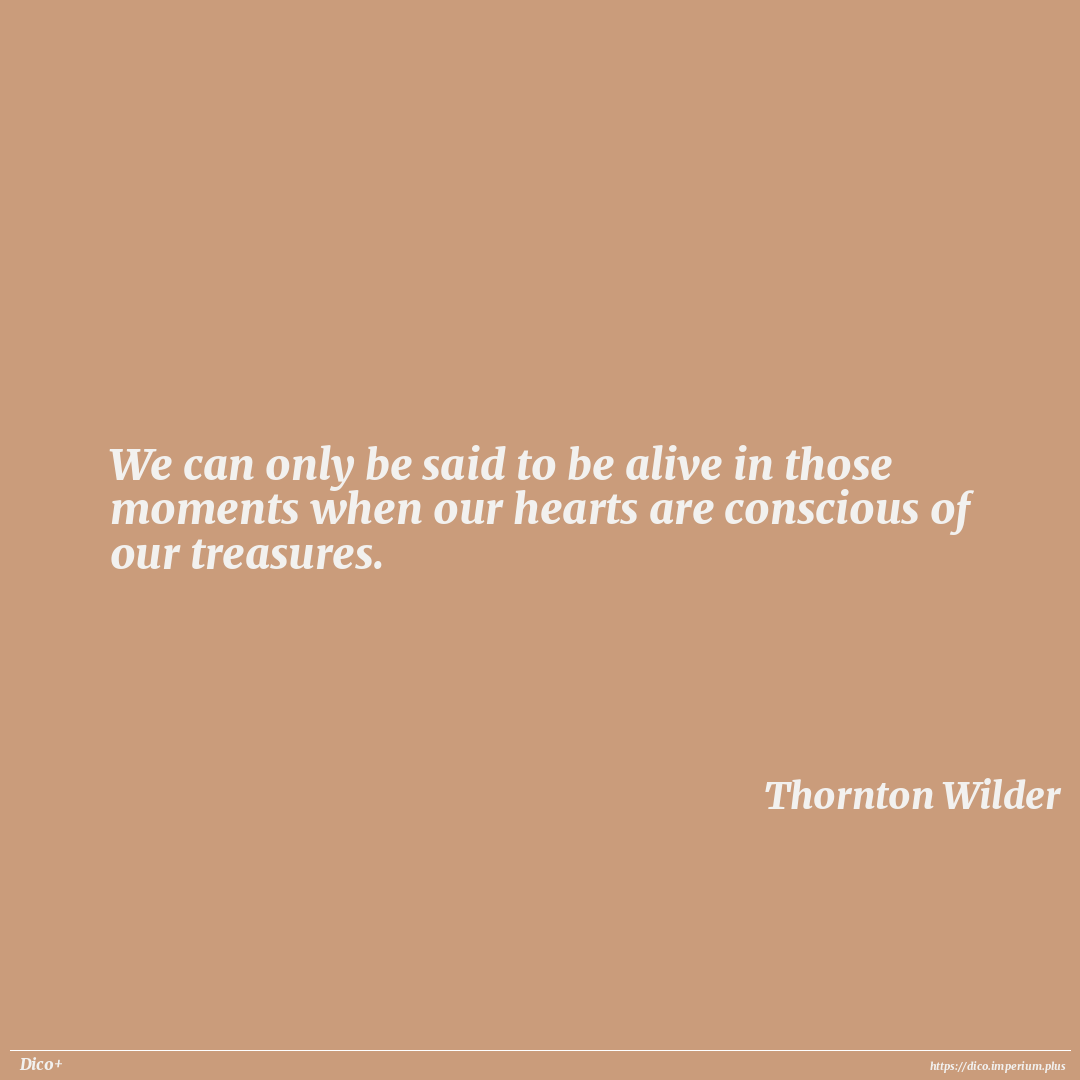 We can only be said to be alive in those moments when our hearts are conscious of our treasures.