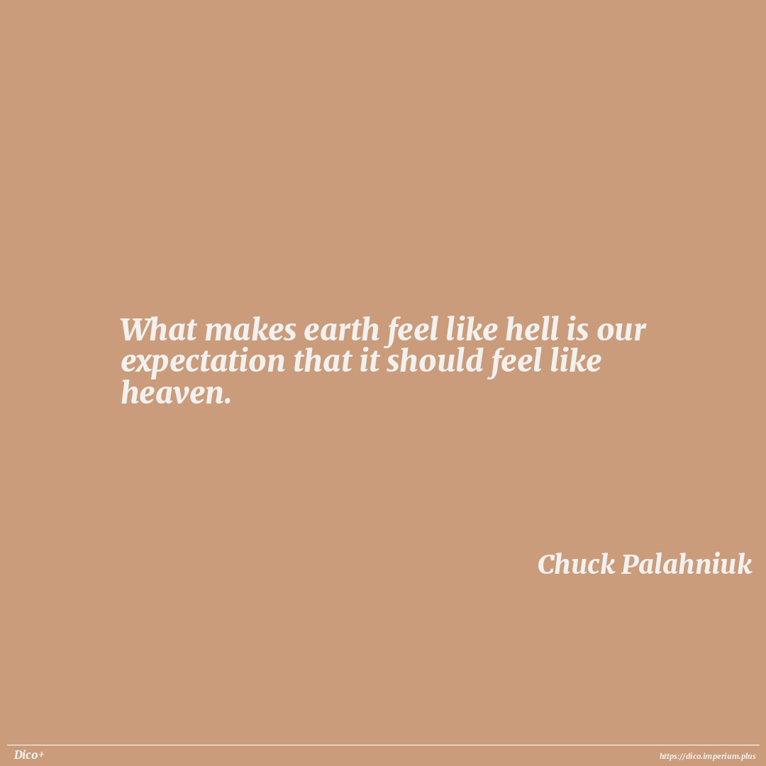What makes earth feel like hell is our expectation that it should feel like heaven.