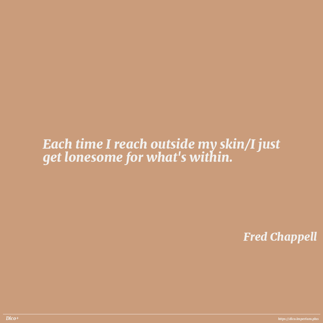 Each time I reach outside my skin/I just get lonesome for what's within.