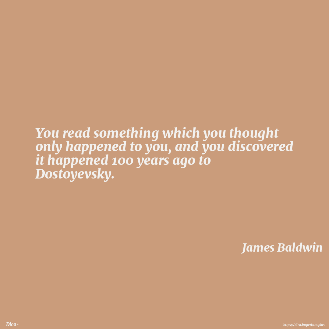 You read something which you thought only happened to you, and you discovered it happened 100 years ago to Dostoyevsky.