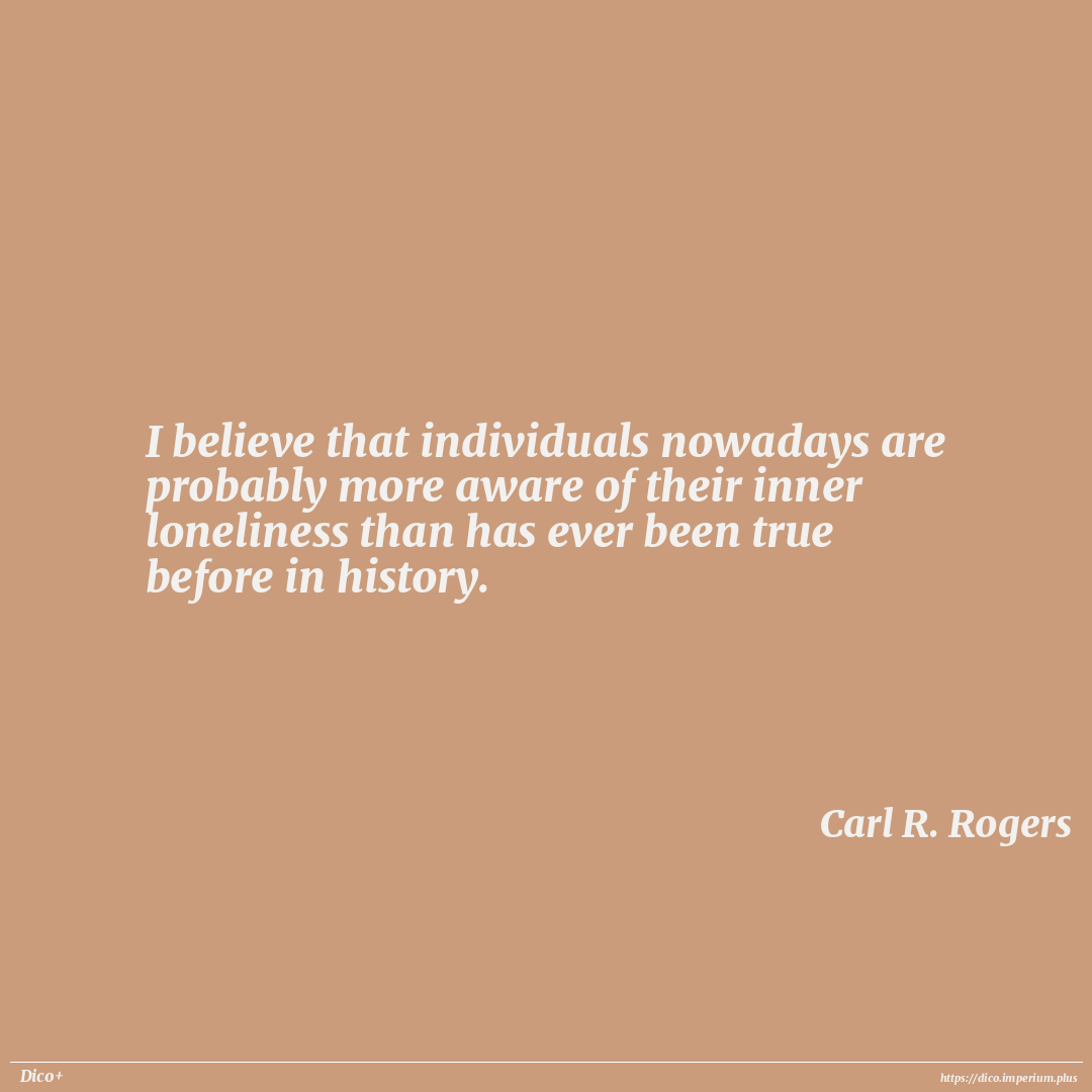 I believe that individuals nowadays are probably more aware of their inner loneliness than has ever been true before in history.