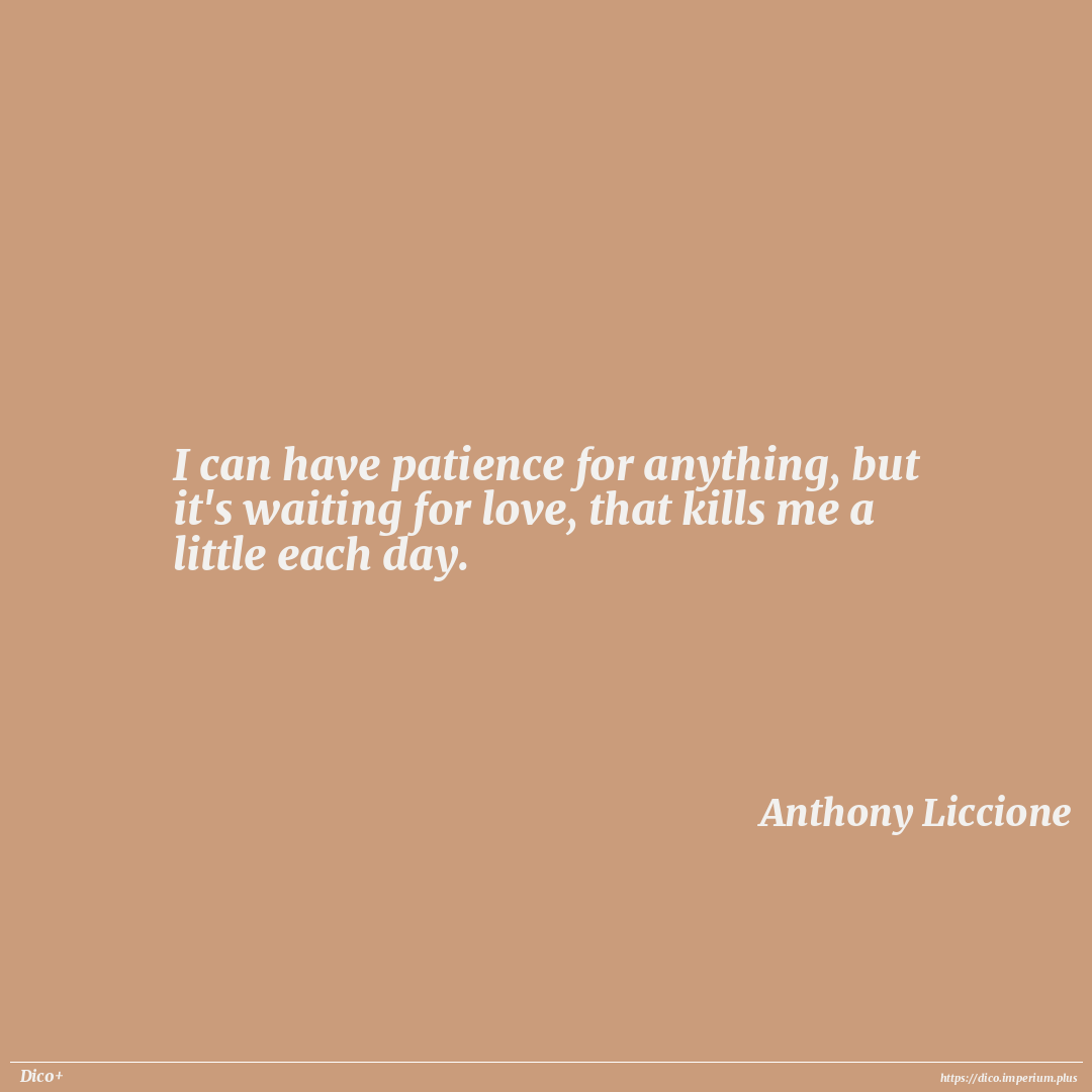 I can have patience for anything, but it's waiting for love, that kills me a little each day.