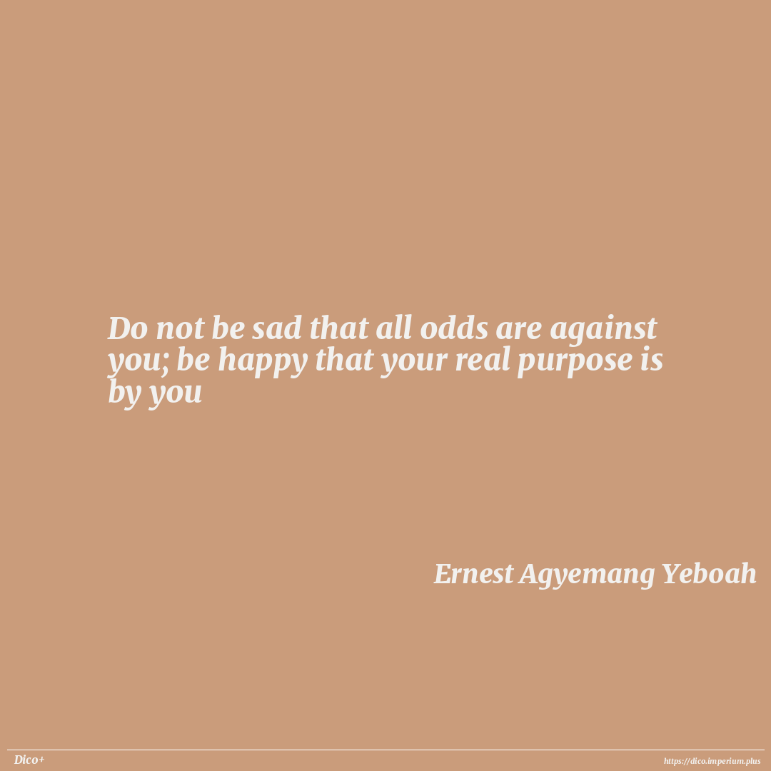 Do not be sad that all odds are against you; be happy that your real purpose is by you