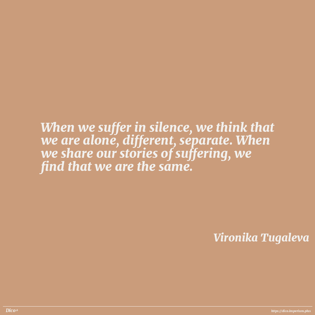 When we suffer in silence, we think that we are alone, different, separate. When we share our stories of suffering, we find that we are the same.