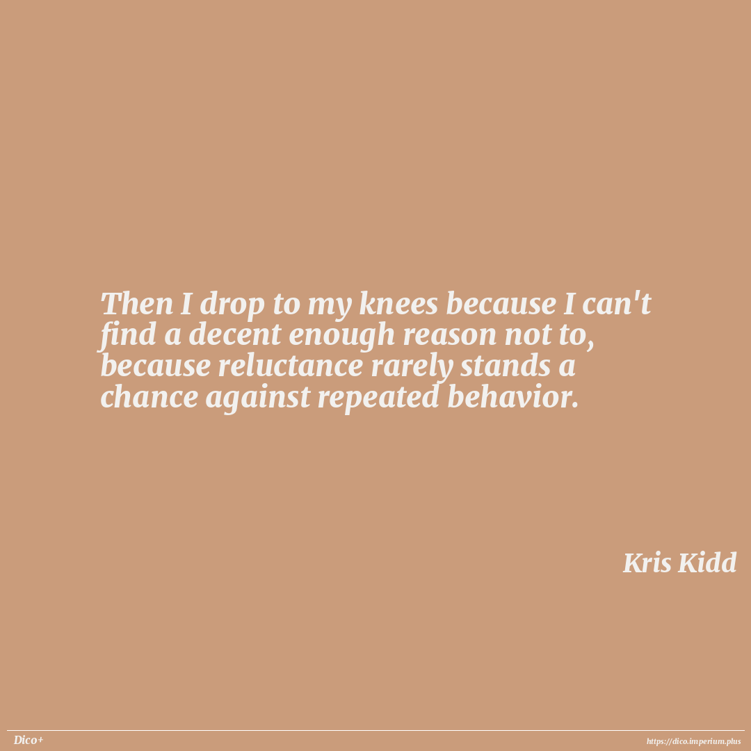 Then I drop to my knees because I can't find a decent enough reason not to, because reluctance rarely stands a chance against repeated behavior.