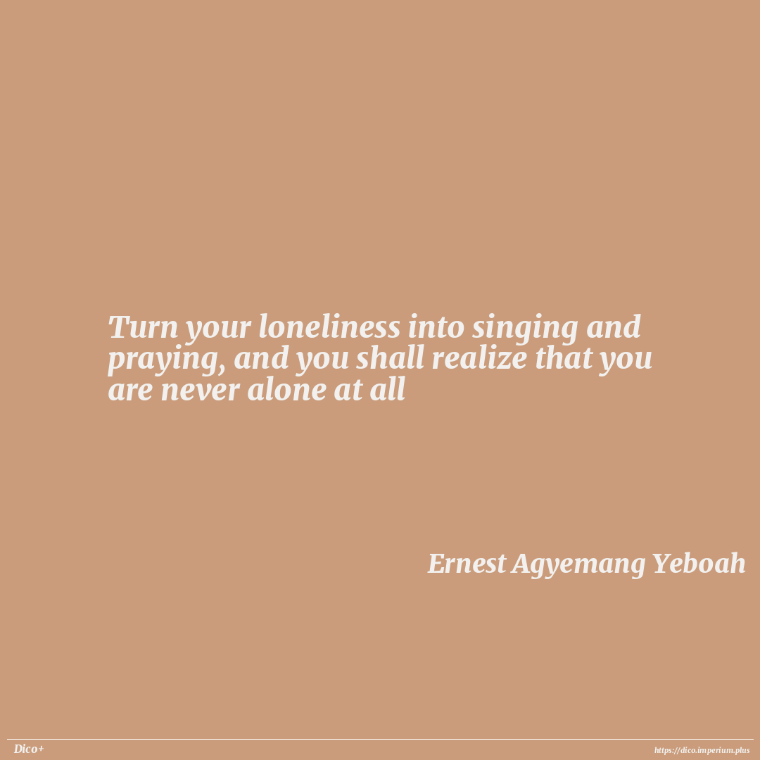 Turn your loneliness into singing and praying, and you shall realize that you are never alone at all