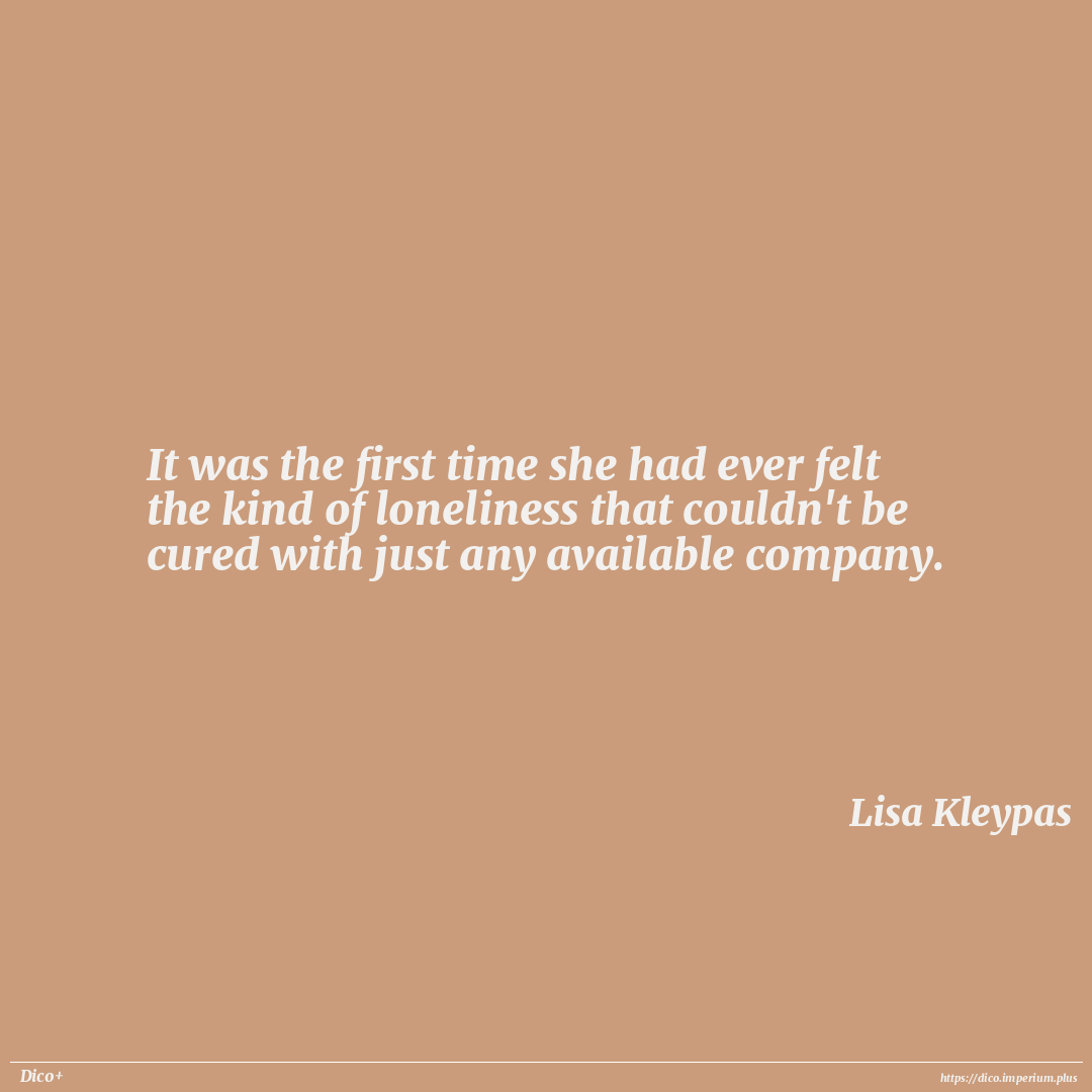 It was the first time she had ever felt the kind of loneliness that couldn't be cured with just any available company.