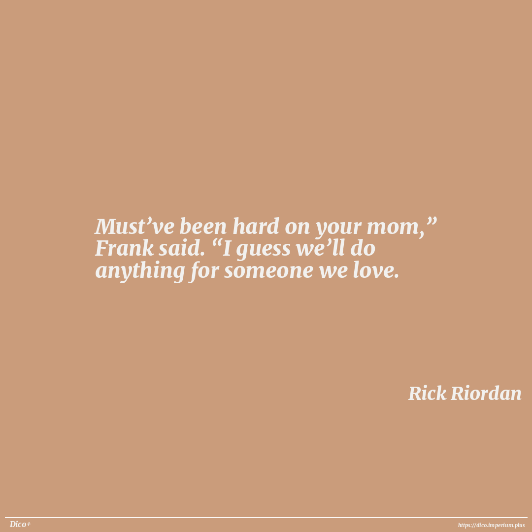 Must’ve been hard on your mom,” Frank said. “I guess we’ll do anything for someone we love.