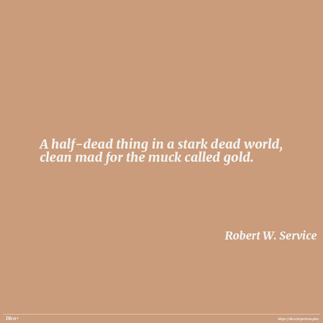 A half-dead thing in a stark dead world, clean mad for the muck called gold.