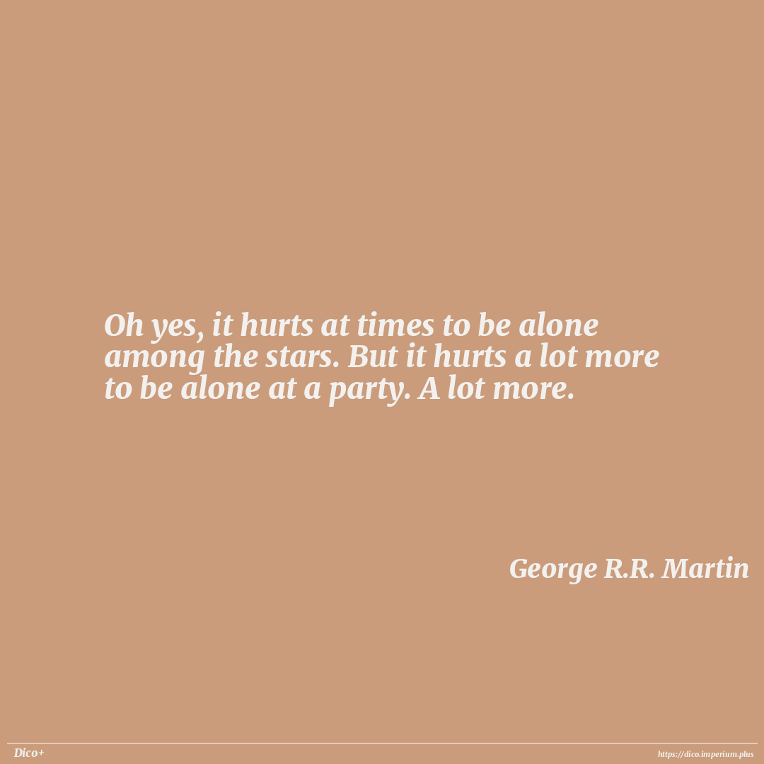 Oh yes, it hurts at times to be alone among the stars. But it hurts a lot more to be alone at a party. A lot more.