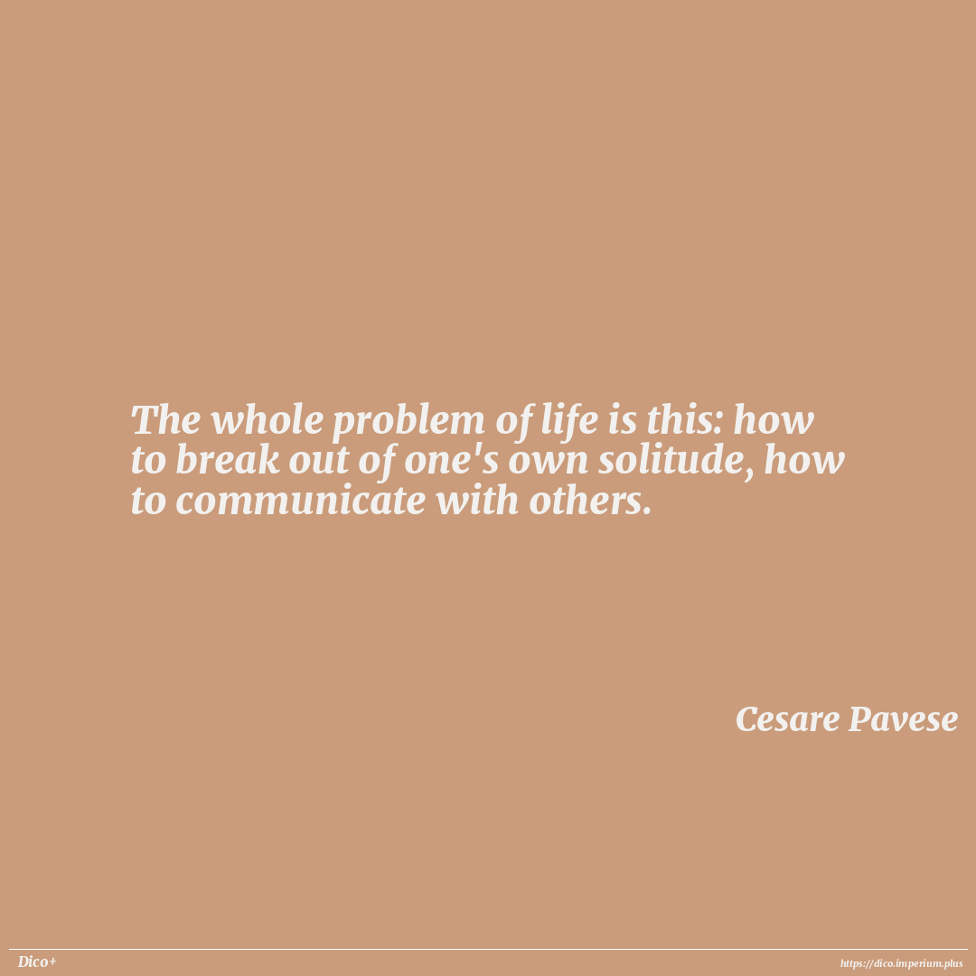 The whole problem of life is this: how to break out of one's own solitude, how to communicate with others.