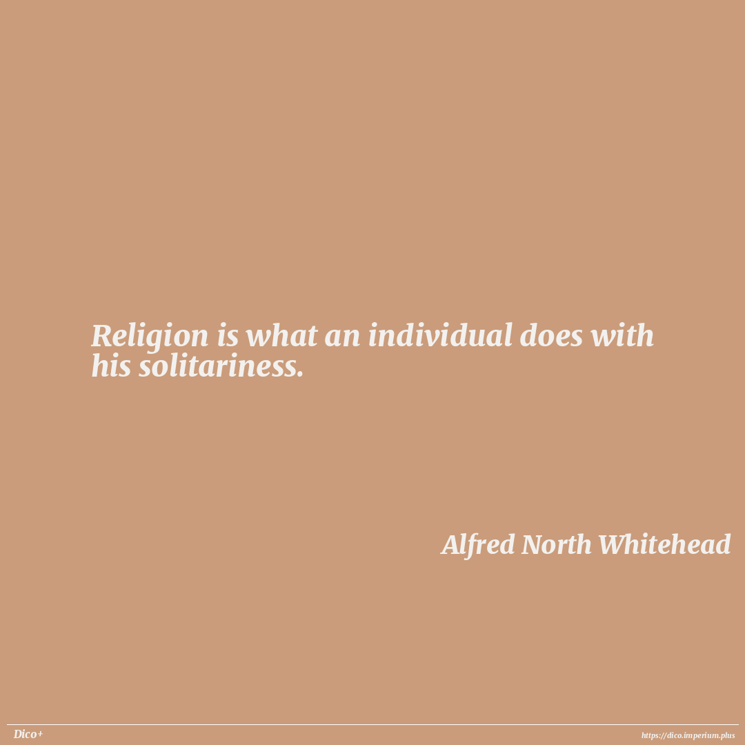 Religion is what an individual does with his solitariness.