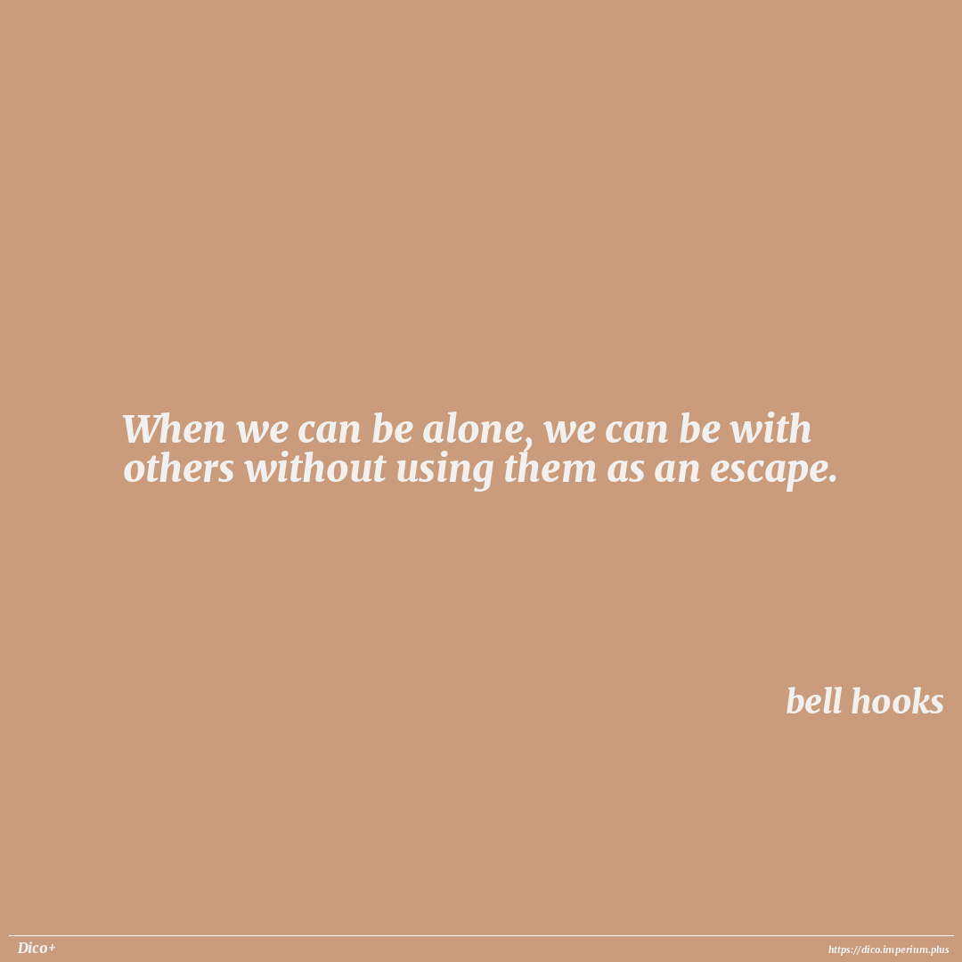 Knowing how to be solitary is central to the art of loving. When we can be alone, we can be with others without using them as a means of escape.