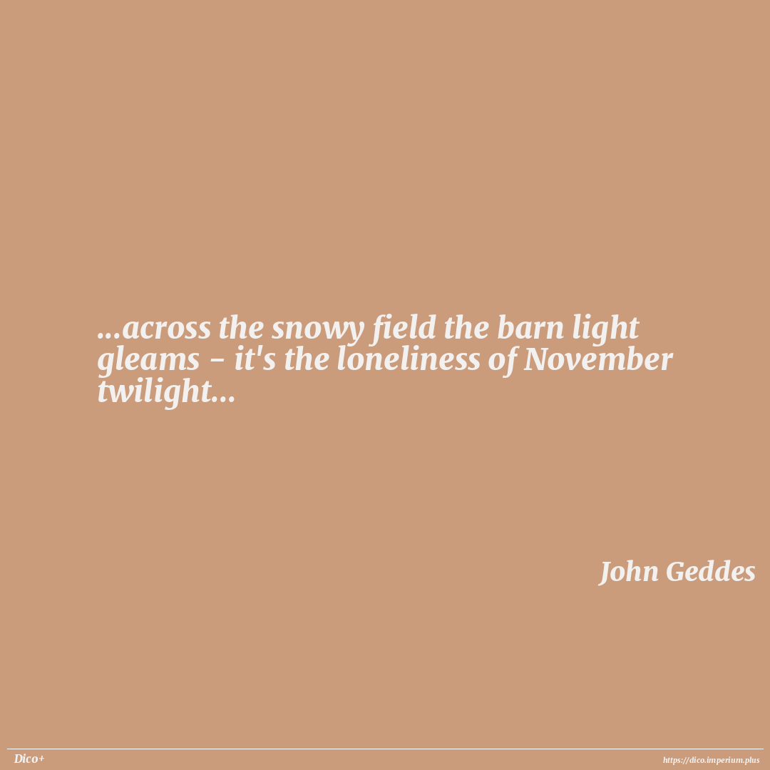 ...across the snowy field the barn light gleams - it's the loneliness of November twilight...