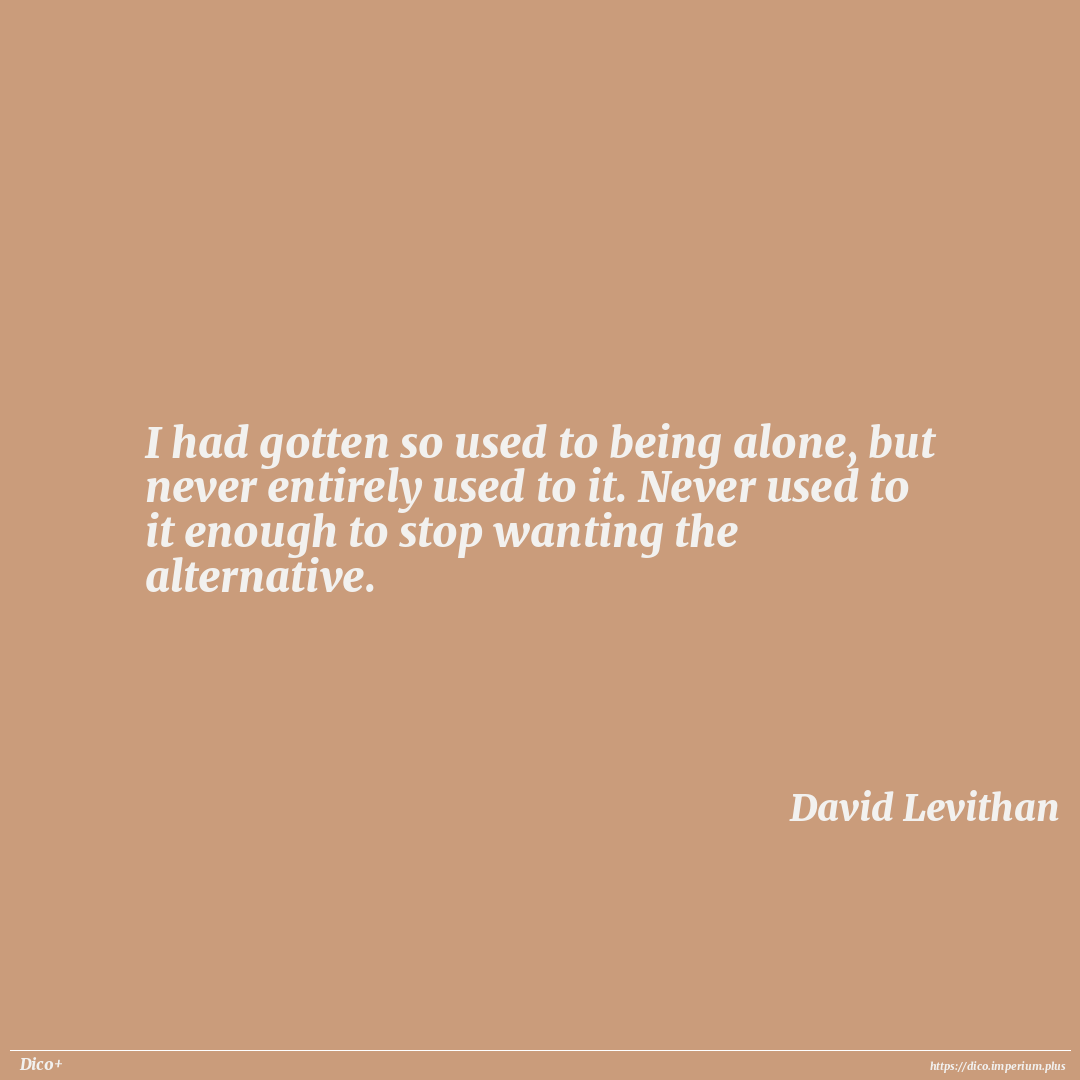 I had gotten so used to being alone, but never entirely used to it. Never used to it enough to stop wanting the alternative.