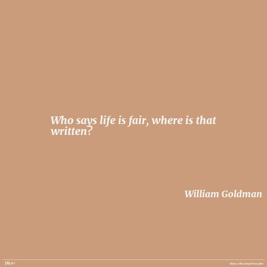 Who says life is fair, where is that written?
