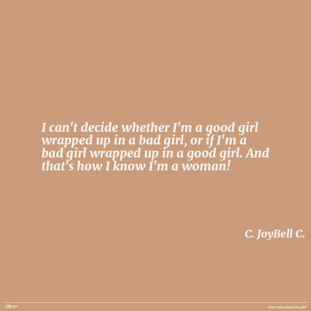 I can't decide whether I'm a good girl wrapped up in a bad girl, or if I'm a bad girl wrapped up in a good girl. And that's how I know I'm a woman!