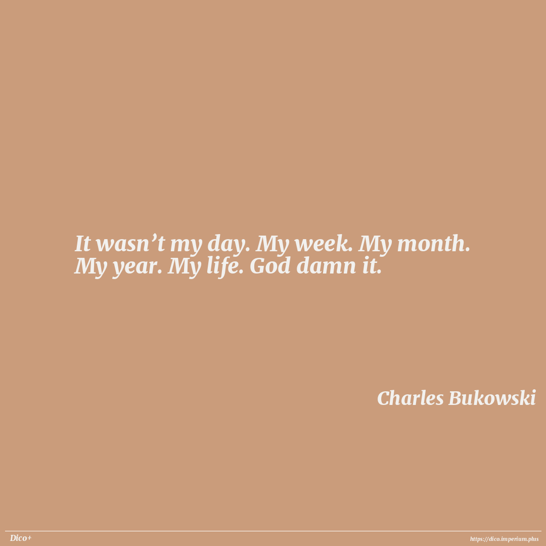 It wasn’t my day. My week. My month. My year. My life. God damn it.