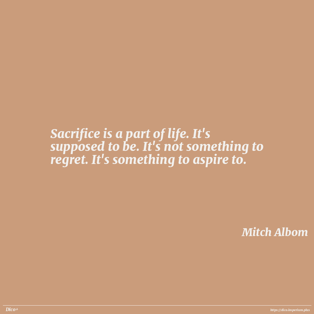 Sacrifice is a part of life. It's supposed to be. It's not something to regret. It's something to aspire to.