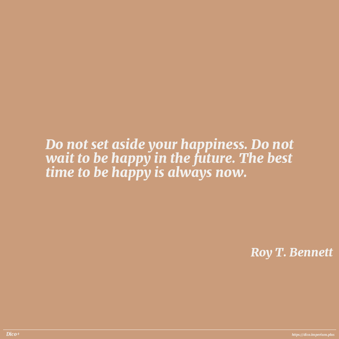 Do not set aside your happiness. Do not wait to be happy in the future. The best time to be happy is always now.