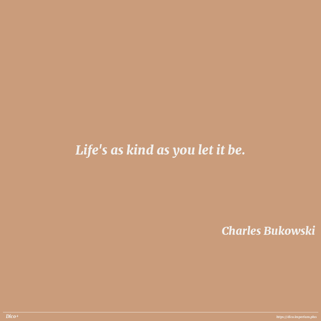 Life's as kind as you let it be.