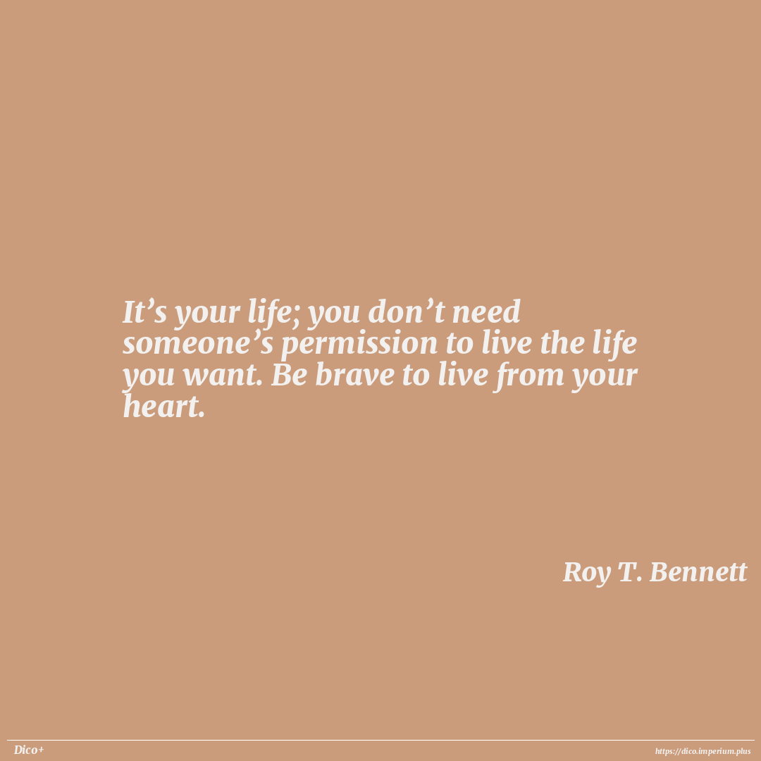 It’s your life; you don’t need someone’s permission to live the life you want. Be brave to live from your heart.