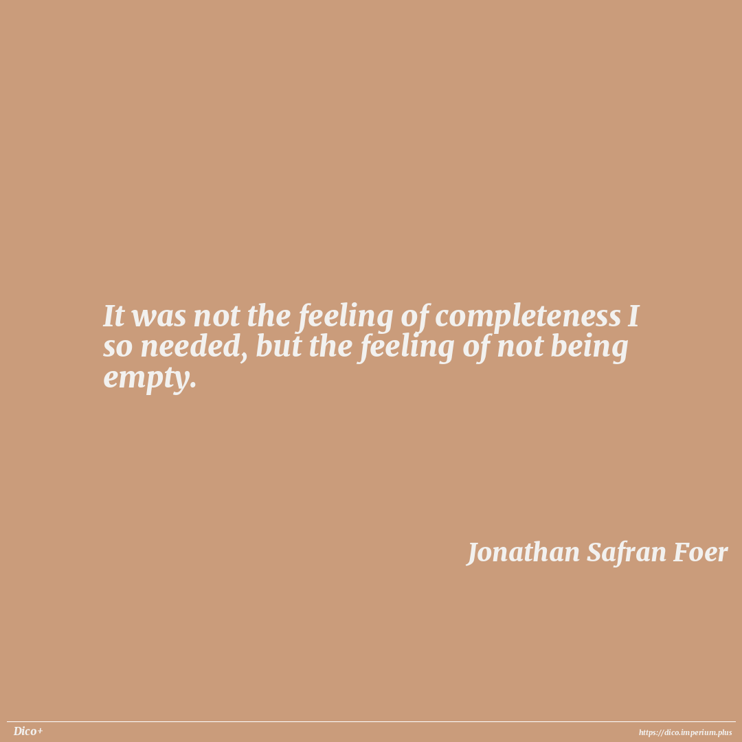 It was not the feeling of completeness I so needed, but the feeling of not being empty.