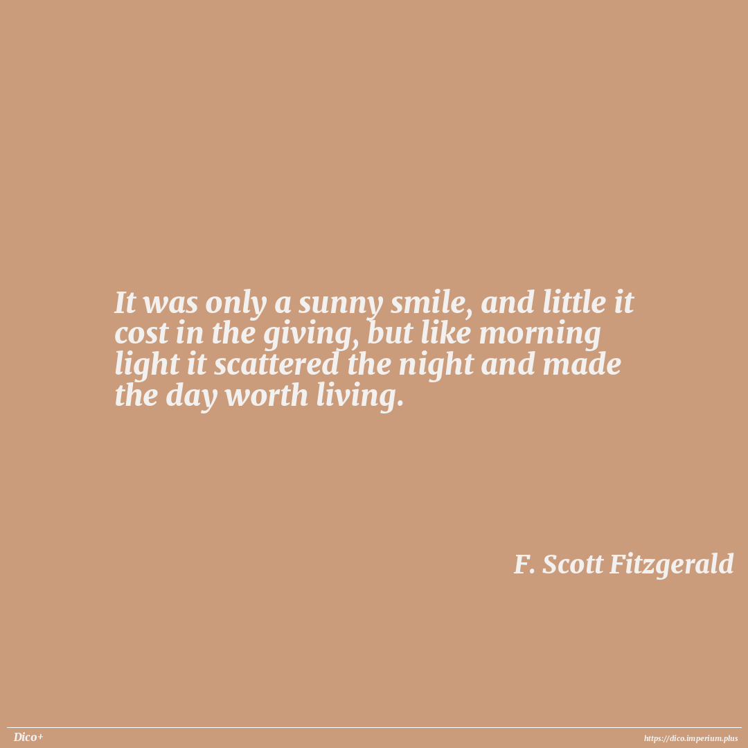 It was only a sunny smile, and little it cost in the giving, but like morning light it scattered the night and made the day worth living.