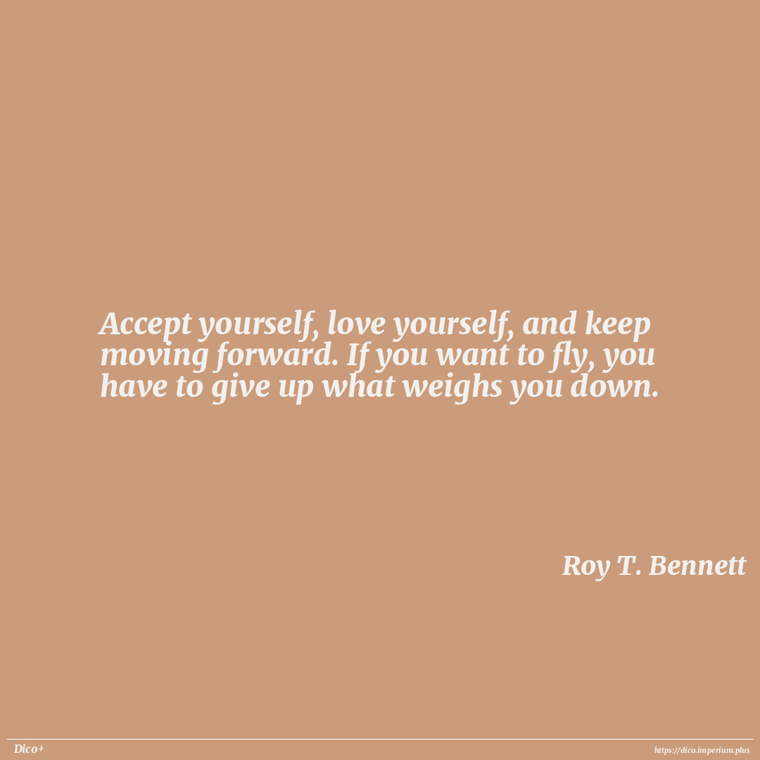 Accept yourself, love yourself, and keep moving forward. If you want to fly, you have to give up what weighs you down.