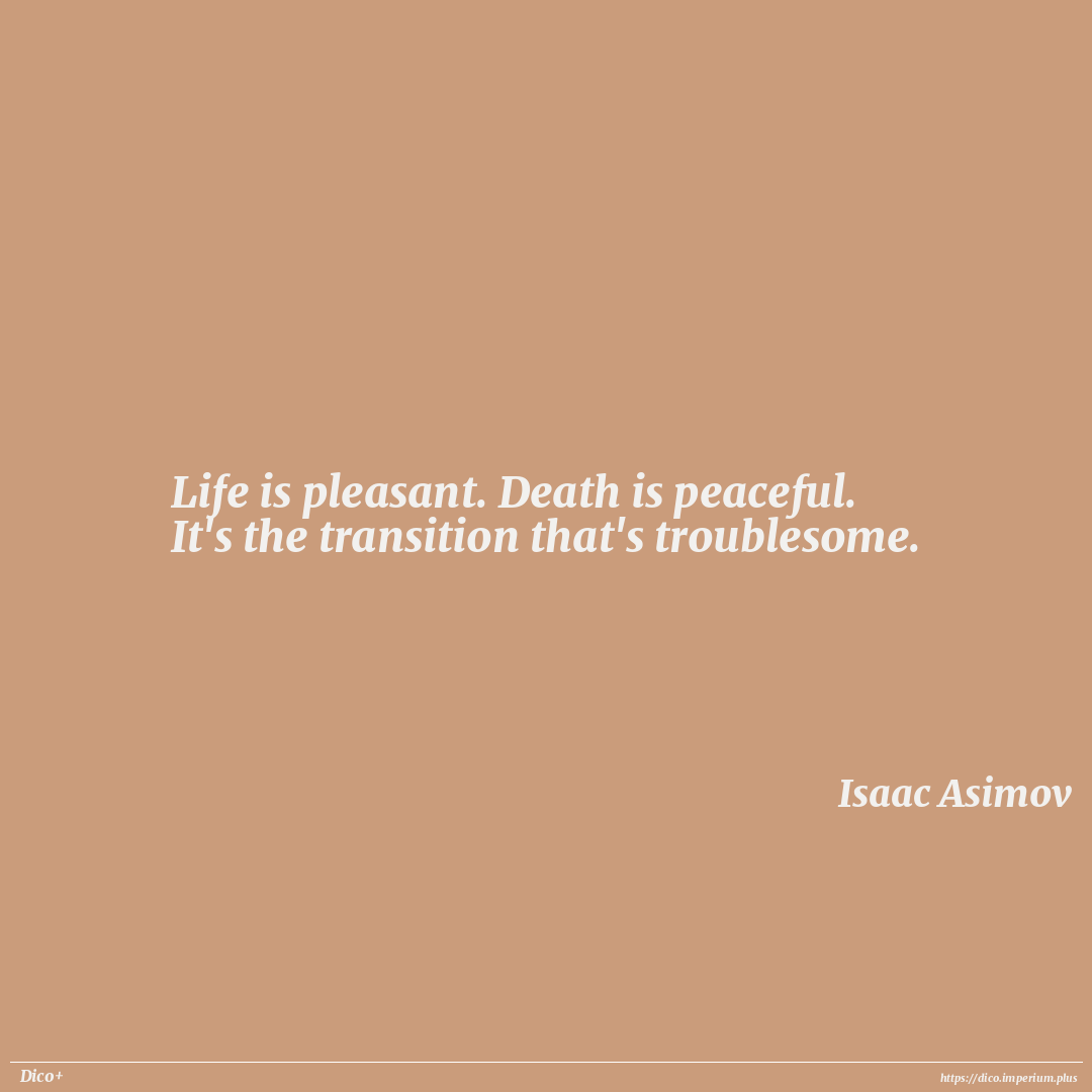 Life is pleasant. Death is peaceful. It's the transition that's troublesome.