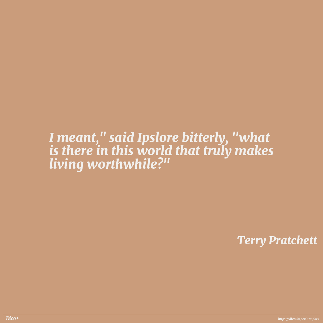 I meant," said Ipslore bitterly, "what is there in this world that truly makes living worthwhile?"