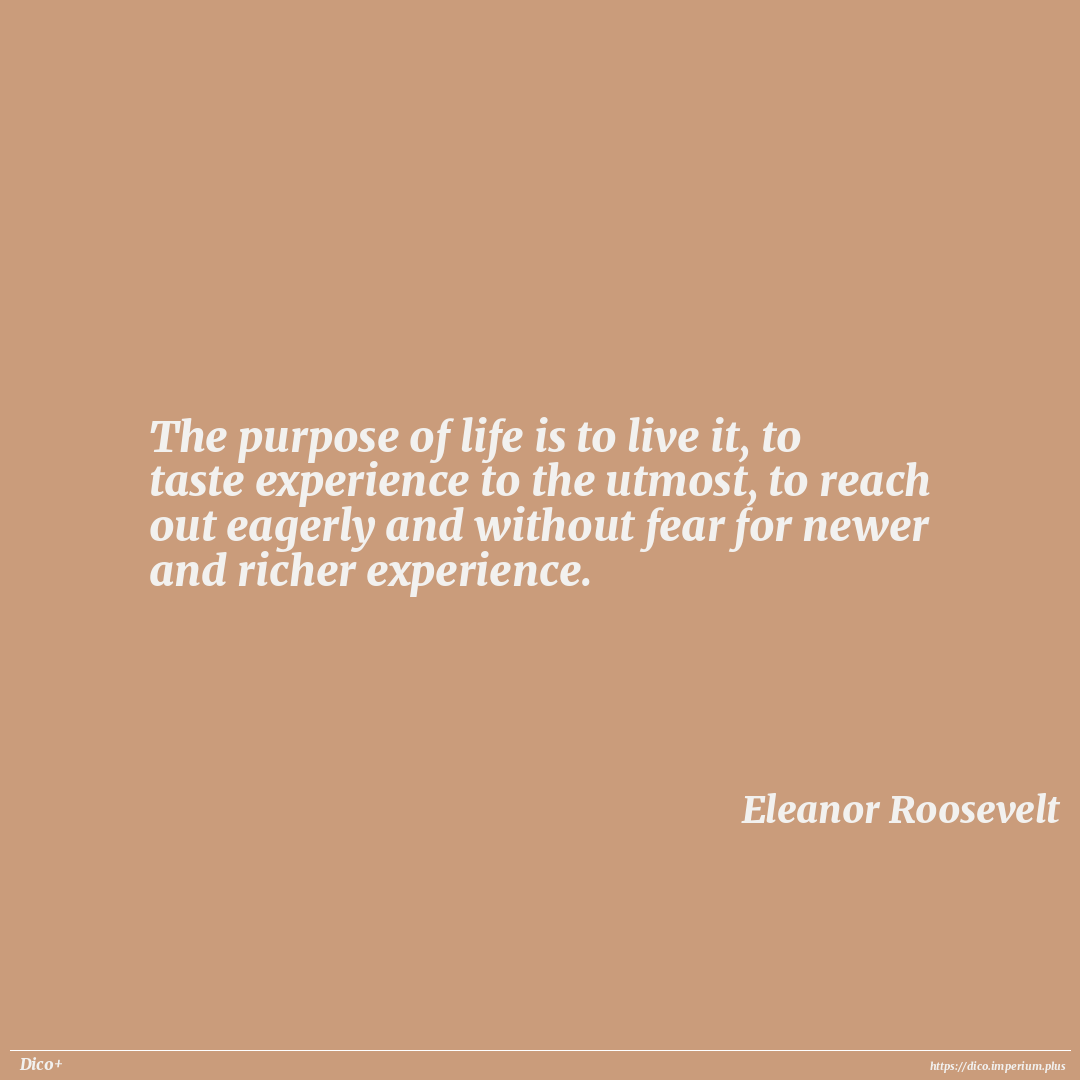 The purpose of life is to live it, to taste experience to the utmost, to reach out eagerly and without fear for newer and richer experience.