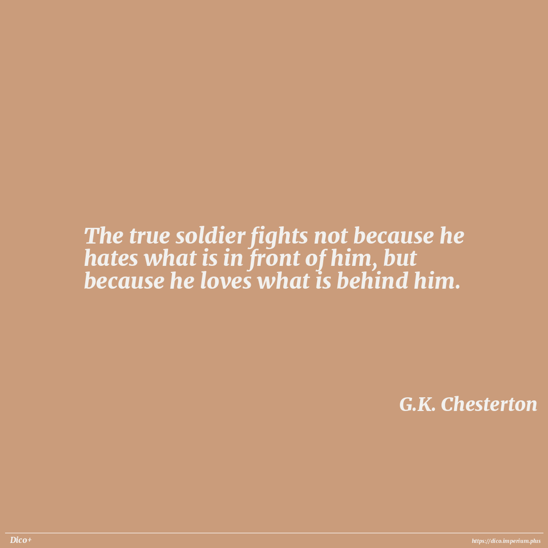 The true soldier fights not because he hates what is in front of him, but because he loves what is behind him.
