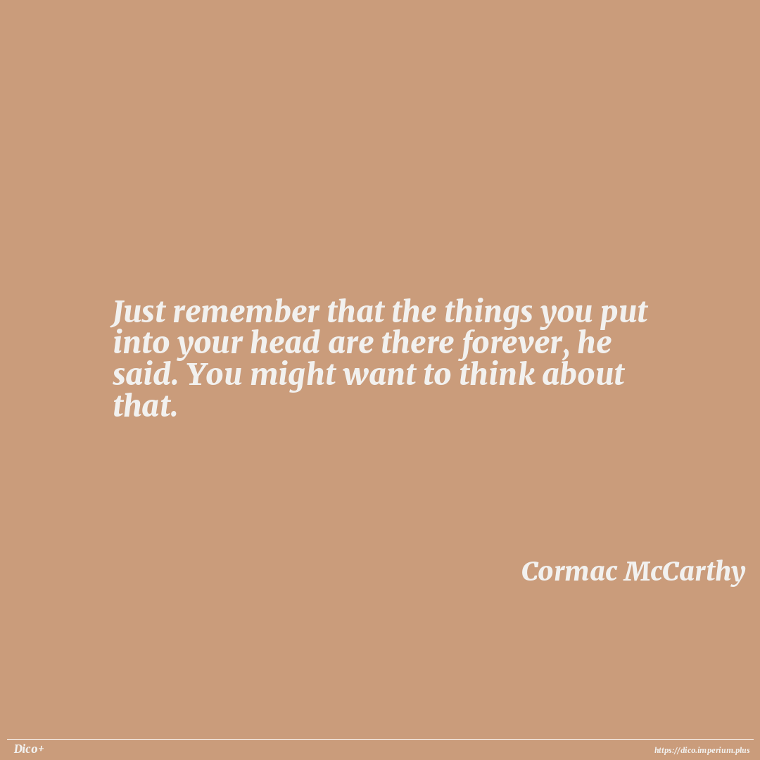 Just remember that the things you put into your head are there forever, he said. You might want to think about that.