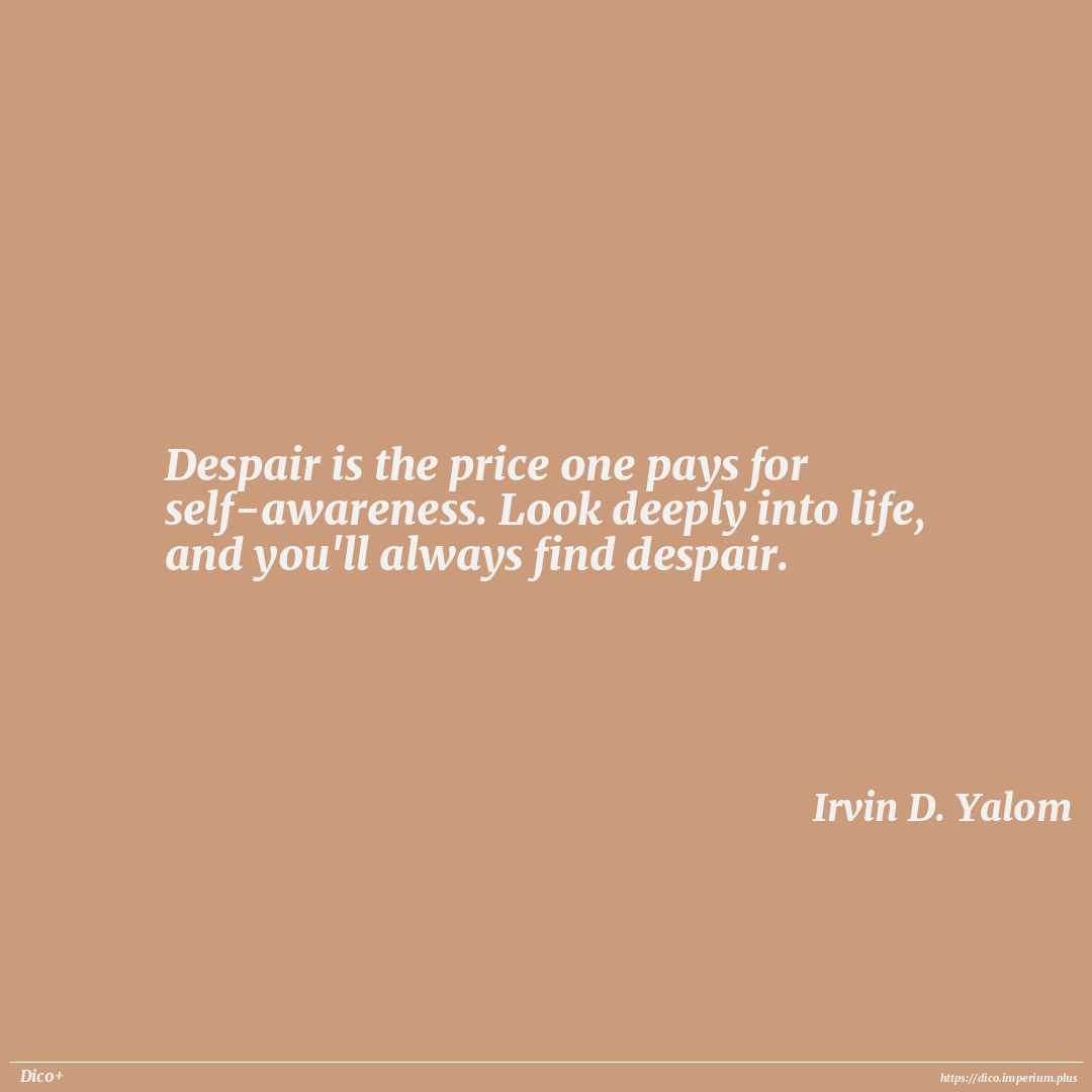 Despair is the price one pays for self-awareness. Look deeply into life, and you'll always find despair.