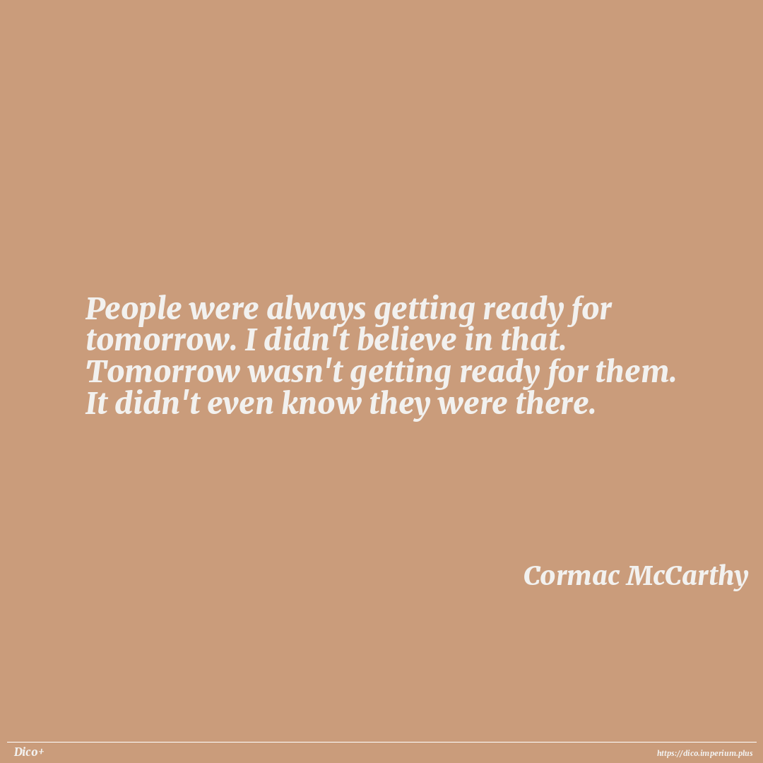 People were always getting ready for tomorrow. I didn't believe in that. Tomorrow wasn't getting ready for them. It didn't even know they were there.
