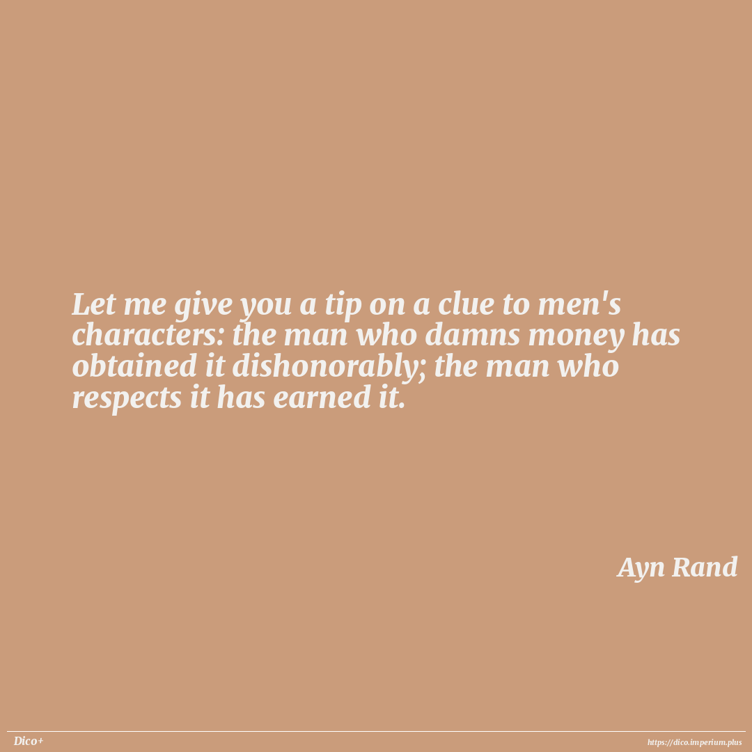 Let me give you a tip on a clue to men's characters: the man who damns money has obtained it dishonorably; the man who respects it has earned it.