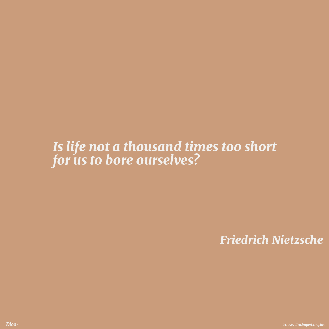 Is life not a thousand times too short for us to bore ourselves?