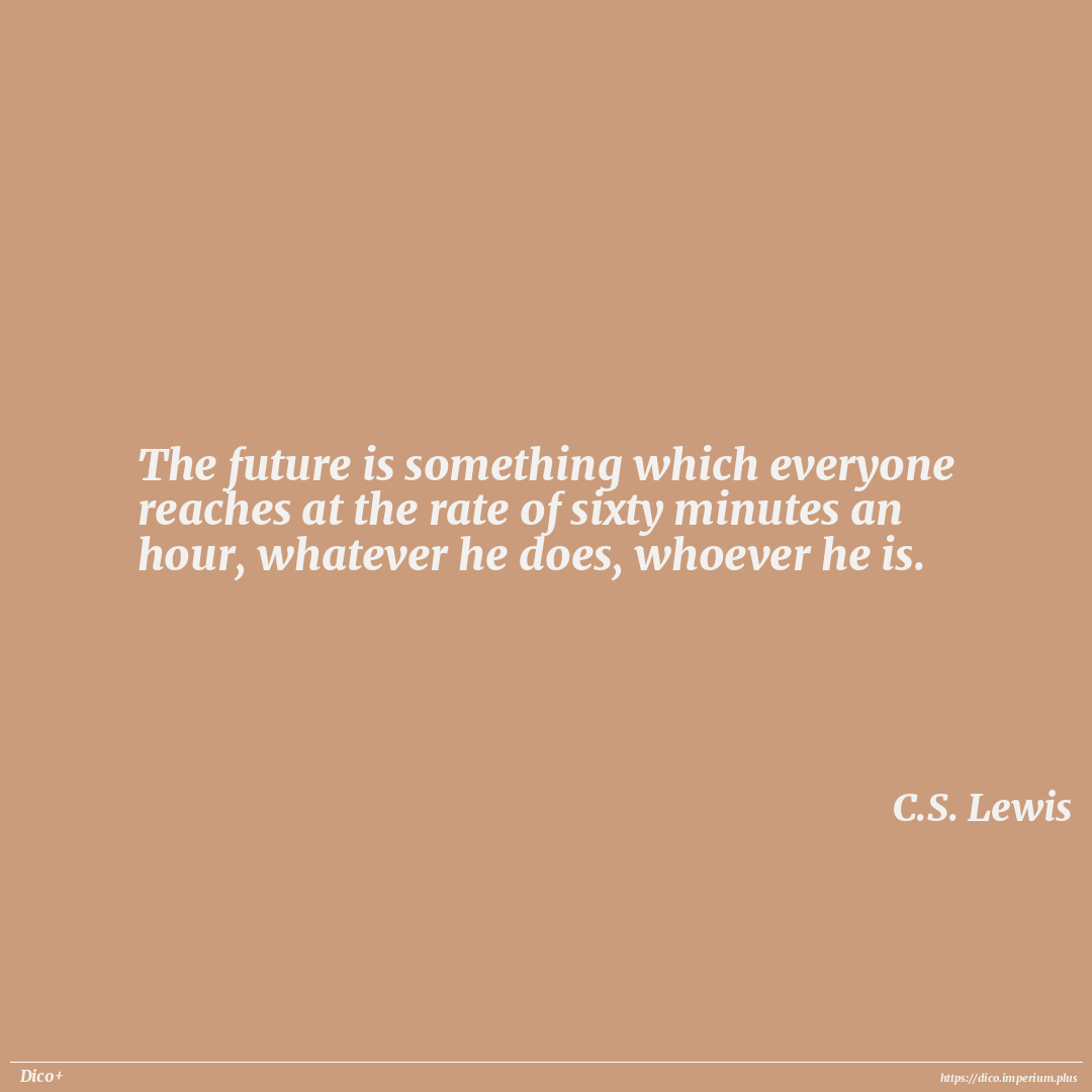 The future is something which everyone reaches at the rate of sixty minutes an hour, whatever he does, whoever he is.