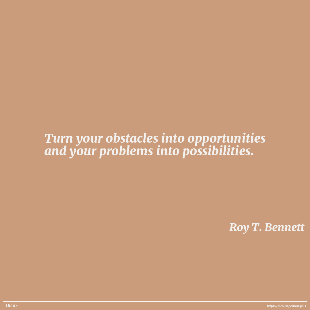 Turn your obstacles into opportunities and your problems into possibilities.