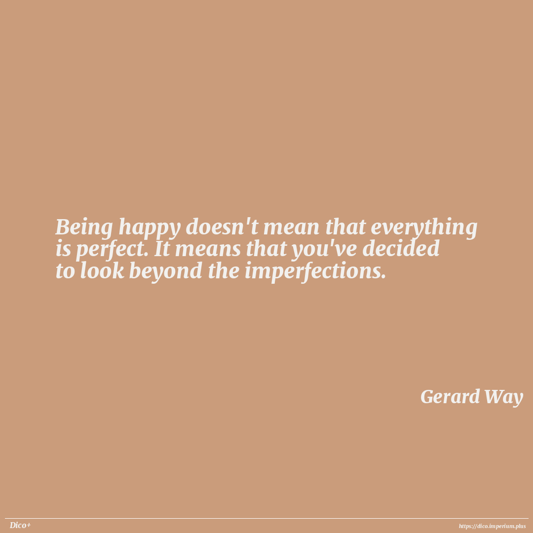 Being happy doesn't mean that everything is perfect. It means that you've decided to look beyond the imperfections.