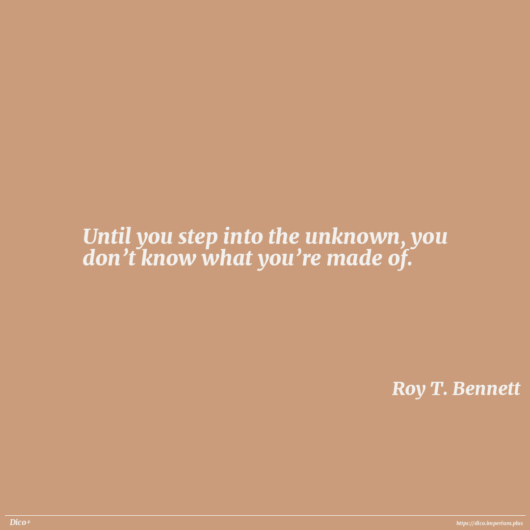 Until you step into the unknown, you don’t know what you’re made of.