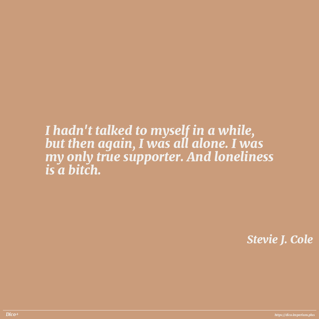 I hadn't talked to myself in a while, but then again, I was all alone. I was my only true supporter. And loneliness is a bitch.