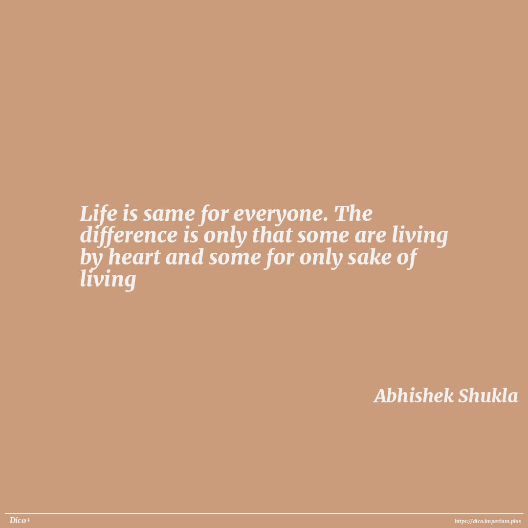 Life is same for everyone. The difference is only that some are living by heart and some for only sake of living