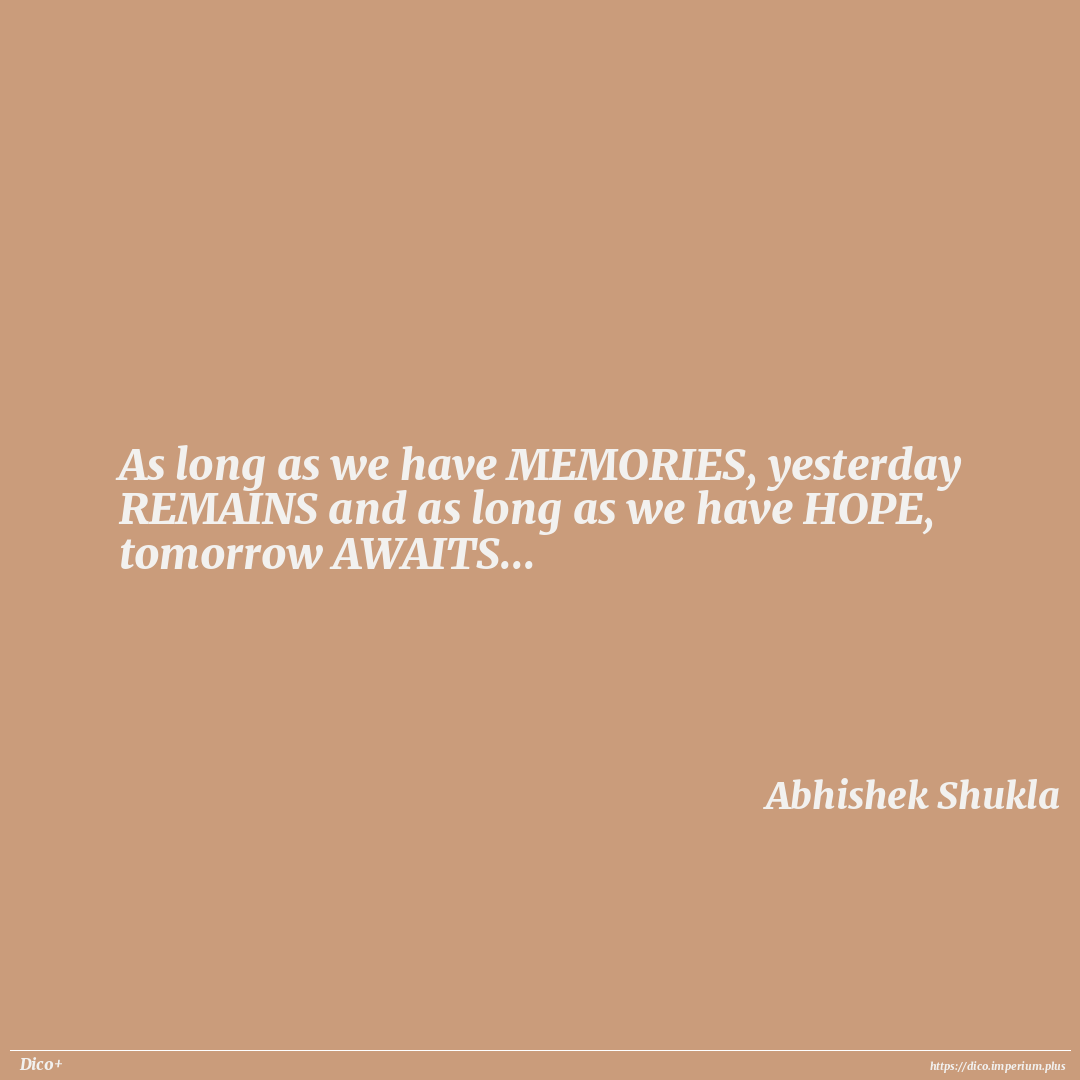 As long as we have MEMORIES, yesterday REMAINS and as long as we have HOPE, tomorrow AWAITS...