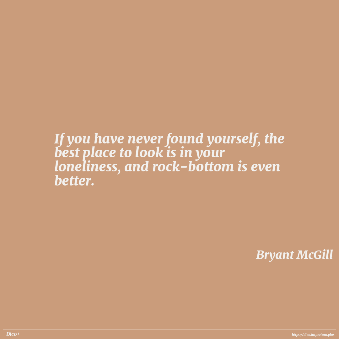 If you have never found yourself, the best place to look is in your loneliness, and rock-bottom is even better.